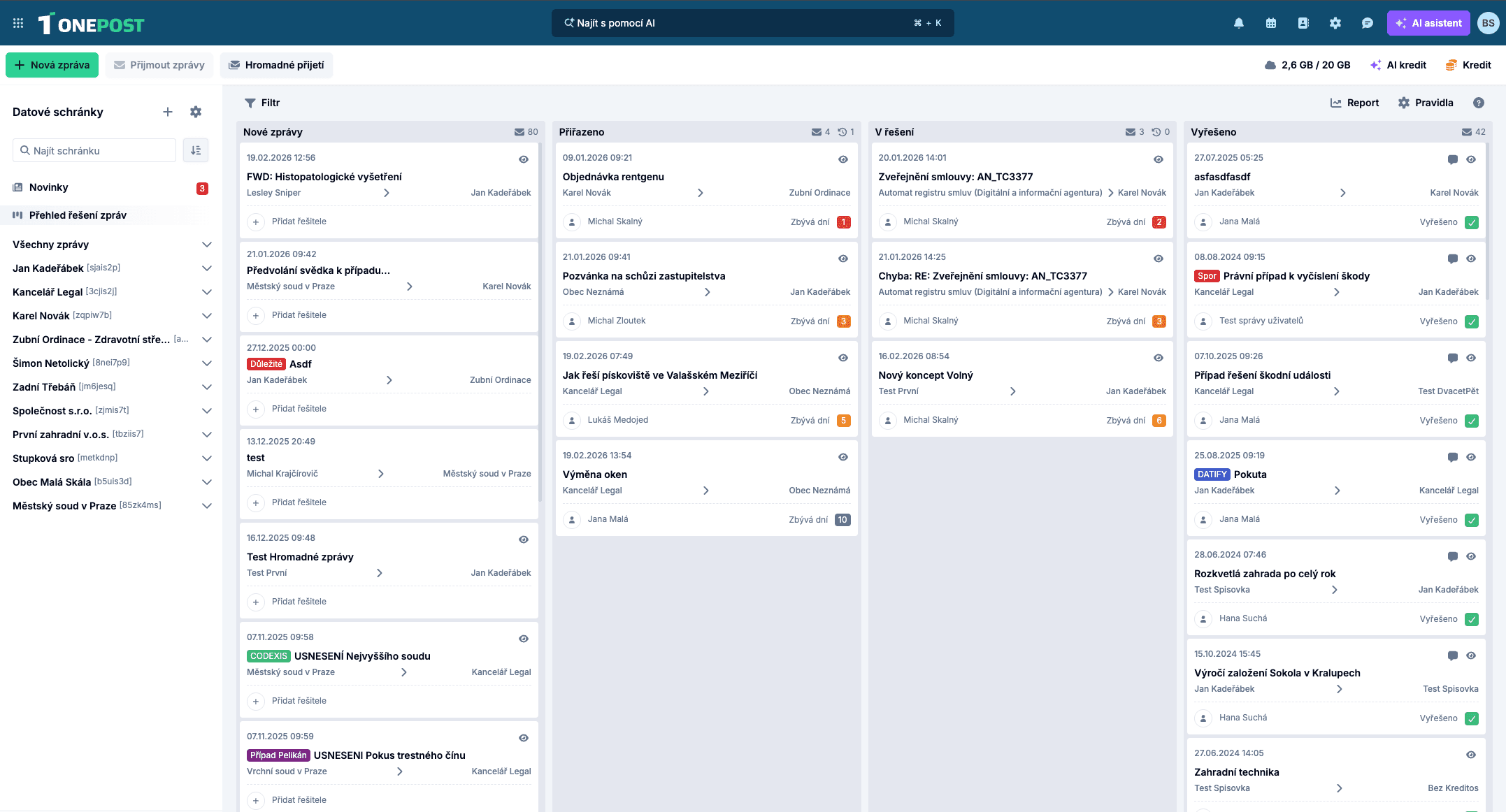 Nové zprávy – nově doručené zprávy, které dosud nemají přiřazeného řešitele